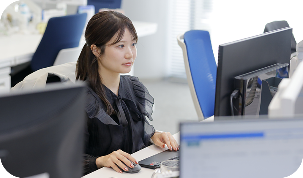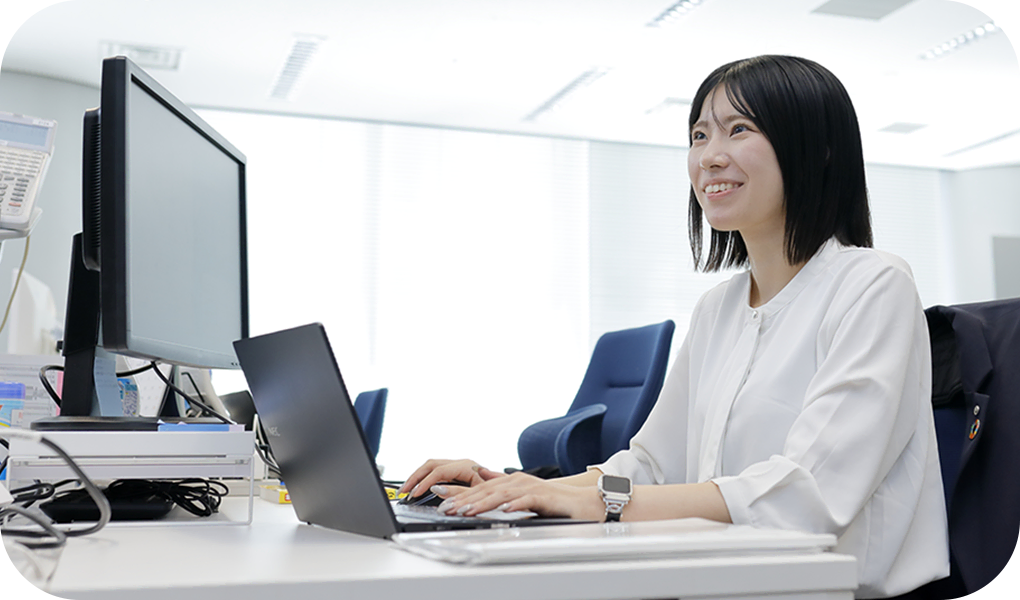 「過去3年間のデータを見ながら、今ちょうど来年度の計画を立てているところです。ゼロから立ち上げた先輩たちの努力を痛いほど感じます。ここに私たちならではの取り組みをつなげていきたい。いつまでも古性さんに頼ってばかりじゃダメなので、新入社員2人でいつも『早く成長するぞ』って激を入れ合っています(笑)」。