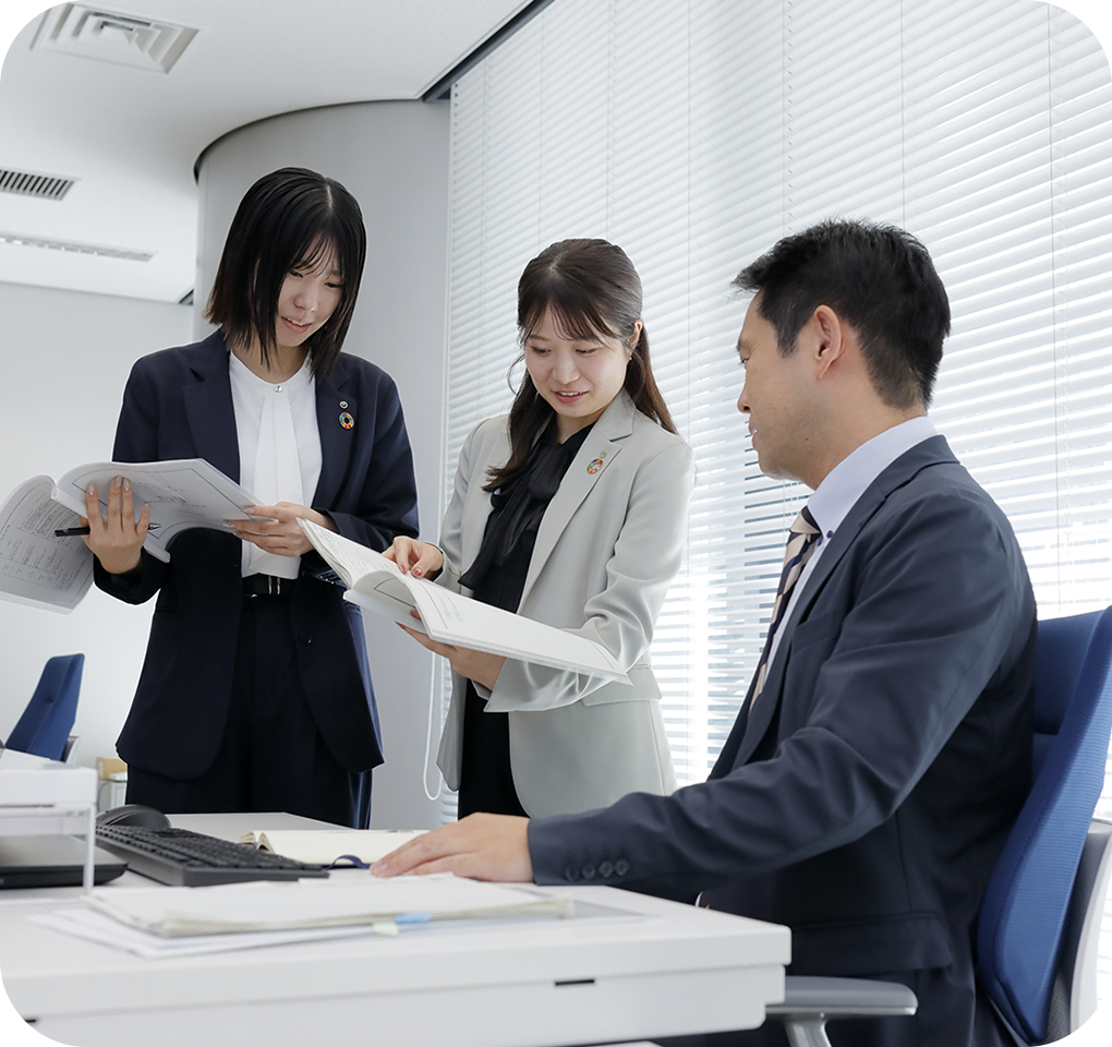 「当初、私は担当企業はもっていませんでしたが、会議には毎回参加してさまざまな事務作業を務めました。議事に関する説明役を任されることもあります。区分所有者8社は誰もが知る企業様ばかりで、互いに意見がぶつかったり、私たち事務局に対して厳しいお言葉を頂戴することもある。とにかく緊張の連続でした」。