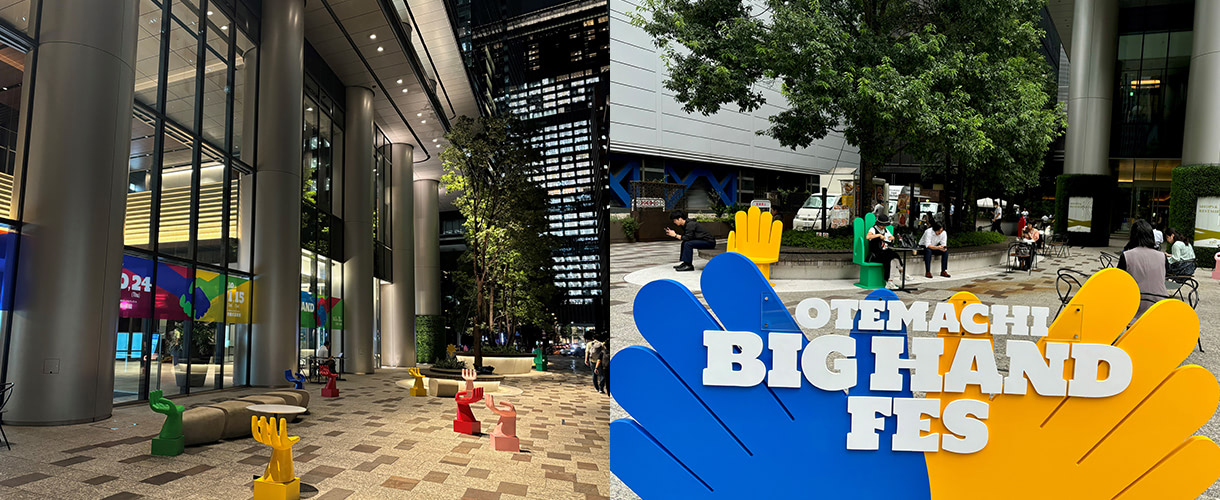 大手町プレイスの賑わい創出活動の一環として「OTEMACHI BIG HAND FES」を2024年10月に1ヶ月間開催。「大手町」を「大(BIG)・手(HAND)・街」と分解するという、言葉遊びを交えたユニークな発想でイベントを企画し、指圧マッサージや手書き似顔絵体験など「手」にまつわる体験コンテンツを実施。いつもと違うお昼時間を街の皆様に提供した。こうしたイベントは、大手町プレイス配属の歴代若手社員が中心となって主体的に取り組み、委託先会社選定から区分所有者への提案、当日運営までを一貫して行っている。