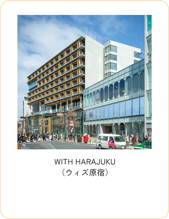 WITH HARAJUKUは2020年に開業して今年6月に5周年を迎えたばかり。人気ショップだけでなくホールやイベントスペースもあって、原宿駅前と竹下通りをつなぐ施設として新しい人の流れまでつくりだした。曜日や時間を問わず、さまざまな年代や国籍の人が行き交っているよね。